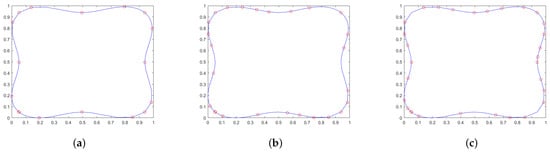 Figure 6 shows the results obtained for 10, 20, and 30 groups. A significant visual difference can be observed between Figure 6a and Figure 6b,c. The resolution with 10 groups is considerably lower. The difference between this trajectory and the one generated with 20 groups is , whereas the difference between the trajectories with 20 and 30 groups is .
