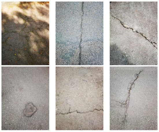 Figure 1 presents representative sample images from the CrackVariety dataset. This dataset is publicly accessible for research purposes and can be obtained from https://github.com/Lucien430/CrackVariety-Dataset.git (accessed on 28 February 2025).