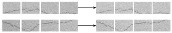 - Grayscale compression: the grayscale range of the image is compressed to improve contrast for enhancing crack visibility (Figure 4).