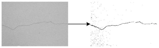 Binarization enhances crack background contrast. Figure 3, Figure 4, Figure 5, Figure 6 and Figure 7 illustrate the key steps of the binarization process, which are image cropping (Figure 3), grayscale range computation (Figure 4), histogram generation (Figure 5), grayscale adjustment (Figure 6), and final binarization thresholding (Figure 7). The process consists of seven steps:
