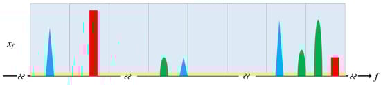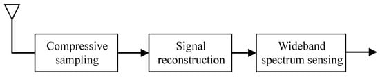 As illustrated in Figure 2, each primary user (PU) typically occupies a continuous segment of the spectrum in practice [,]. Furthermore, the sampled spectrum consists of blocks that are either occupied by continuous non-zero elements or occupied by continuous zero elements, thereby forming a block sparsity structure.