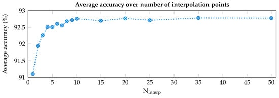 Accuracy of the system for different resolutions (i.e., number of interpolation points, Ninterp, between adjacent channels) of the orientation estimation algorithm.
