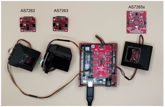 - Sutherland, C.; Henderson, A.D.; Giosio, D.R.; Trotter, A.J.; Smith, G.G. Synchronising an IMX219 Image Sensor and AS7265x Spectral Sensor to Make a Novel Low-Cost Spectral Camera. HardwareX 2024, 19, e00573. [Google Scholar] [CrossRef]