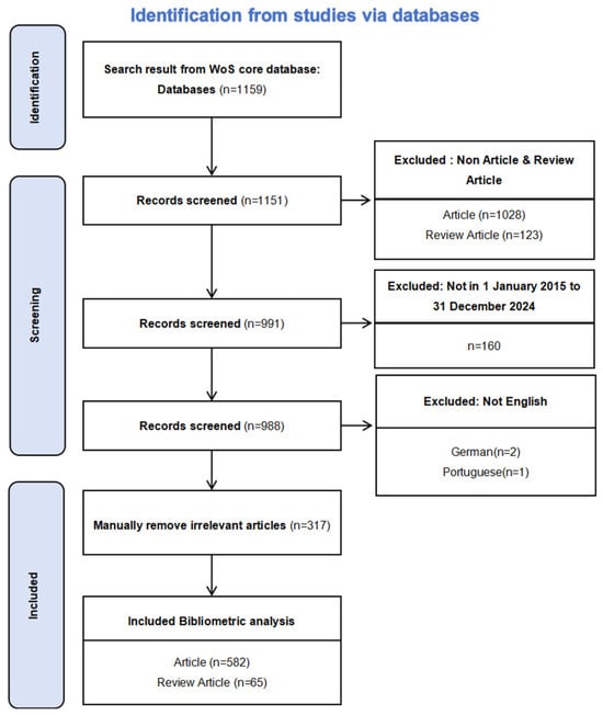 This study utilized the Web of Science (Core Collection) database as the primary data source. The Web of Science, which is managed by Clarivate Analytics, is a highly regarded digital research database; it is widely acknowledged for its comprehensive and reliable coverage as it encompasses a broad spectrum of publications across various fields. It is considered one of the most suitable databases for bibliometric analysis [14]. Additionally, we also searched Scopus and PubMed, and after filtering for SCI/SSCI articles, we found that all such articles were included in the Web of Science search results.