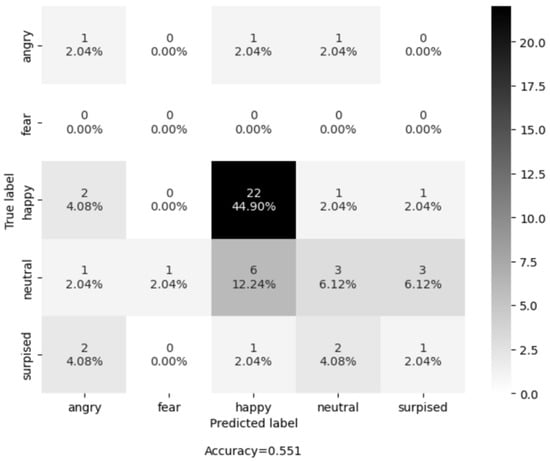 Preprocessing of the input image is done in two stages, as follows: In the first stage, extraction and face cropping are performed with the Python open source MediaPipe library [41]. In the second stage, the cropped faces are transformed from RGB to grey scale, and the images are resized to 48 × 48 × 1.
