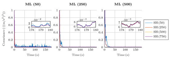 As explained in [27], the plant covariance matrix is estimated using the maximum likelihood algorithm (ML). Based on a sequence of data, this method seeks to obtain the covariance values which are more likely to produce such a sequence. The main advantage of this method is that it ensures a convergence to the true values of the covariance matrix. However, it requires a sliding window of data and, depending on the size of the window, the performance of the method can be affected, yielding to biased estimations.