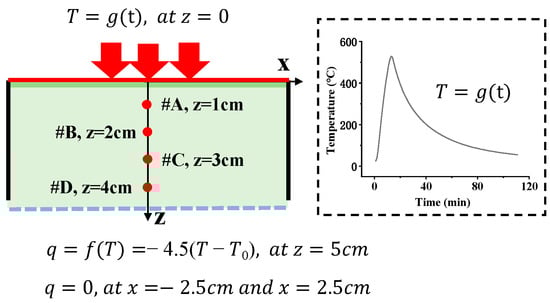 - Najafi, H.; Woodbury, K.A.; Beck, J.V. Real time solution for inverse heat conduction problems in a two-dimensional plate with multiple heat fluxes at the surface. Int. J. Heat Mass Transf. 2015, 91, 1148–1156. [Google Scholar] [CrossRef]