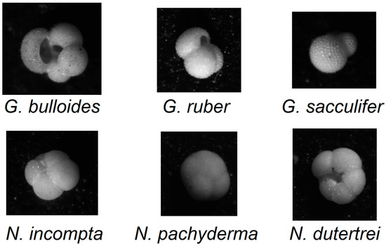 - Mitra, R.; Marchitto, T.M.; Ge, Q.; Zhong, B.; Kanakiya, B.; Cook, M.S.; Fehrenbacher, J.S.; Ortiz, J.D.; Tripati, A.; Lobaton, E. Automated species-level identification of planktic foraminifera using convolutional neural networks, with comparison to human performance. Mar. Micropaleontol. 2019, 147, 16–24. [Google Scholar]