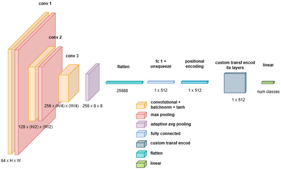 This network combines the local feature extraction capabilities of 3D Convolutional Neural Networks (CNNs) with the long-range dependency modeling of Transformer-based architectures, see Figure 6. The proposed architecture effectively extracts multiscale spatial and spectral representations via a 3D CNN backbone before processing them through a Transformer Encoder, which refines feature dependencies and enhances global context modeling. The architectural design ensures computational efficiency and robustness in handling high-dimensional input data.