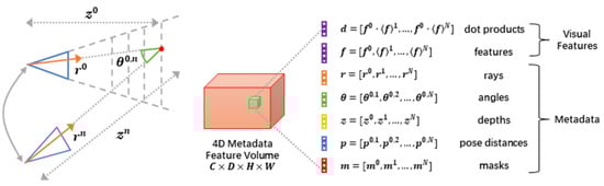 A comprehensive summary of these traits is illustrated in Figure 6. Traditional MVS systems typically predict depth by analyzing warped features or computing disparities between features, often through techniques like dot products. In contrast, our approach augments this process by including easily obtainable metadata, aiming to enhance the overall performance. Every outcome, designated as , undergoes processing via a straightforward multilayer perceptron (MLP), which yields a solitary scalar value corresponding to each coordinate . This scalar serves as an indication of the preliminary probability for the depth approximation of the pixel  situated on the kth depth plane.