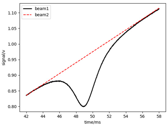Simultaneously, two light rays were allowed to pass through the measured flow field, employing the two-line ratio method for temperature measurement. This method utilizes two spectral lines that follow the same path and determines the temperature by calculating the ratio of the integrated absorption areas of the two spectral lines [24]. The formula for temperature is as follows: