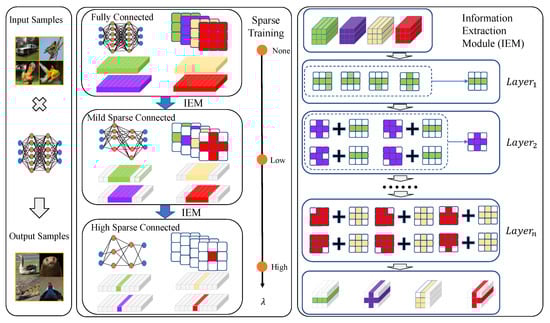 This section primarily focuses on the proposed sparse stripe pruning method. In Section 3.1, we present the overall framework of the approach, along with a regularization method designed for sparse feature extraction. The proposed sparse training and IEM are illustrated in Figure 2. In Section 3.2, a sparse training strategy is introduced to optimize the balance between network sparsity and feature extraction capabilities.