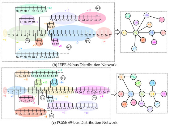 - IEEE 69-bus Distribution Network: A larger standardized network with more nodes and complex topology, used to test the scalability and applicability of the optimization method in large networks.