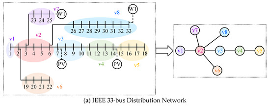 To convert the complex distribution network topology into a graph model for optimization, the nodes and topology are simplified as follows: