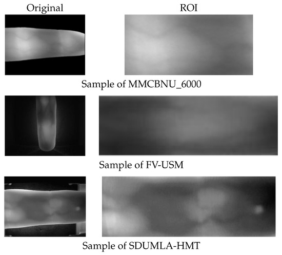 Original and ROI sample images of three FV datasets.