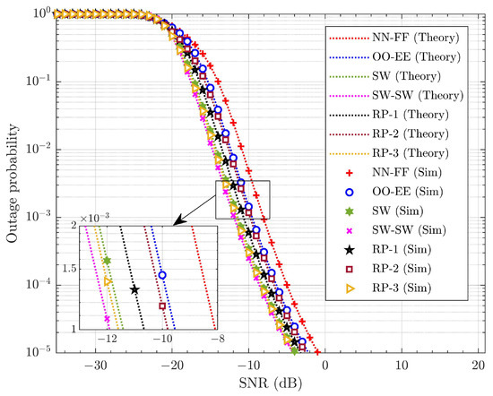 is the number of IOS components allocated to the SUE during the ith sub-frame and pth pairing. By substituting the PDF of and solving as in [29,34], the outage probability at the SUE during direct transmission is determined as