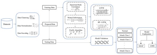This section presents the foundational models for the proposed IDS framework. Spearman’s Rank Correlation and Mutual Information are utilized as initial feature selection techniques, and their combined results are fed into the firefly algorithm, which optimizes the feature selection process and identifies the most relevant features. Long Short-Term Memory (LSTM) networks are employed to analyze complex and extensive IoT datasets for intrusion detection. To enhance model explainability, the proposed framework incorporates various XAI methods to provide a clear and intuitive interpretation of the model.