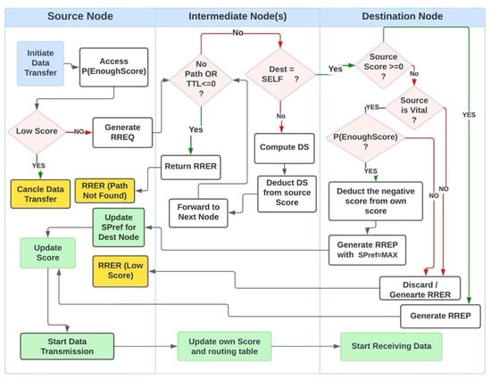 A node initiating a data transfer must maintain an adequate score to pay the intermediate nodes for their relaying services. In contrast, the nodes try to earn higher scores by cooperating with others so that they can easily transfer their data.