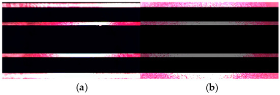 where ⨂ is the Kronecker product and is an -dimensional column vector of ones. Consequently, is an -dimensional binary column vector in which unit entries indicate the dazzled sensor’s pixel rows. Next, the resulting dazzle pattern in the acquired image (e.g., Figure 4) can be obtained by the following: