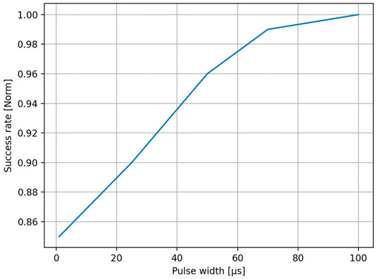 The average attack success rate as a function of the AMOLS pulse width.
