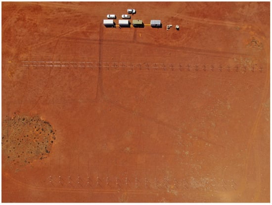 SpaceFest [70] is a series of Australian space surveillance campaigns that have been run, in some form, since 2018. The HFLOS system participated in SpaceFest on numerous occasions between 2018 and 2022, deploying to South Australia’s Far North and conducting space surveillance activities in conjunction with other sensors. These repeated deployments allowed for iterative system development and verification, conducting experiments with new hardware, array configurations, and signal processing. Receive array deployments included planar arrays (as shown in Figure 1), sparse circular arrays, multiple linear arrays, and general, large-baseline, multistatic configurations.