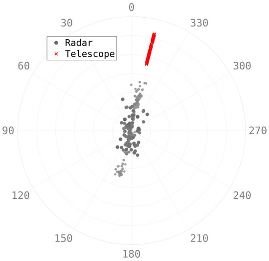 - Pirovano, L.; Principe, G.; Armellin, R. Data association and uncertainty pruning for tracks determined on short arcs. In Celestial Mechanics And Dynamical Astronomy; Springer: Berlin/Heidelberg, Germany, 2020; Volume 132, pp. 1–23. [Google Scholar]
