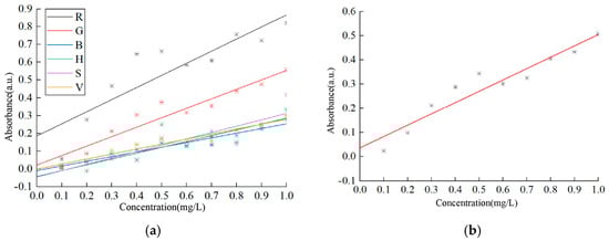 The analysis and processing of data form the core content of the research, and this process is based on the Beer–Lambert Law. Additionally, a mathematical relationship (Equation (13)) between the quantization values in the color quantization model and the sample concentration is established.