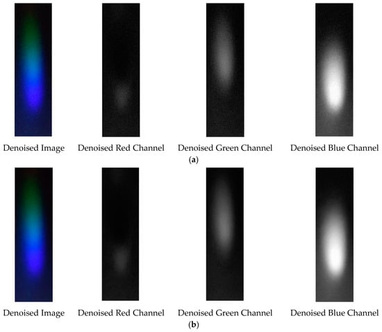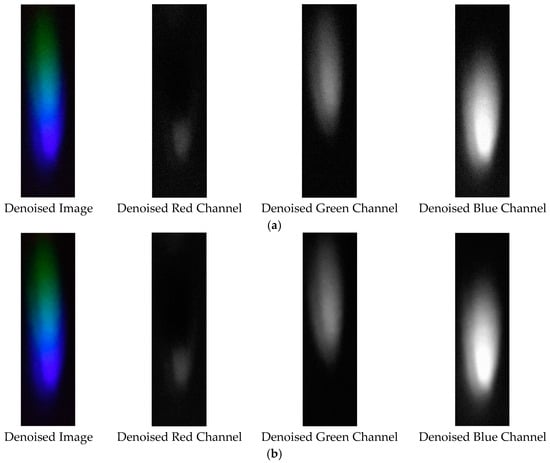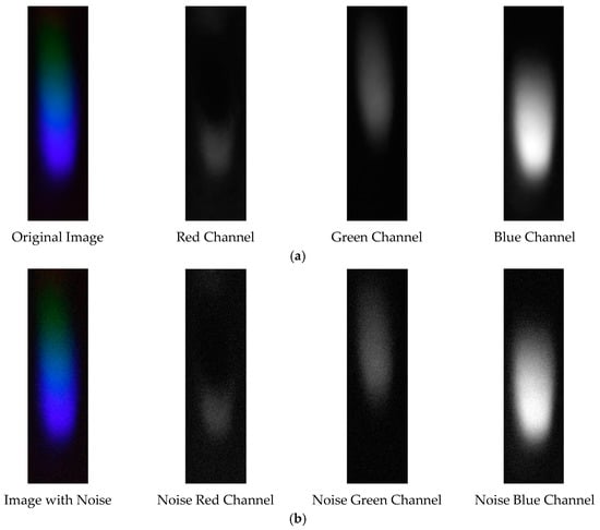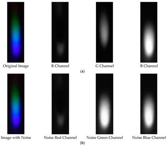 Visible light of 0.03 g/mL lead ion solution. (a) Without added Gaussian noise; (b) with added Gaussian noise.