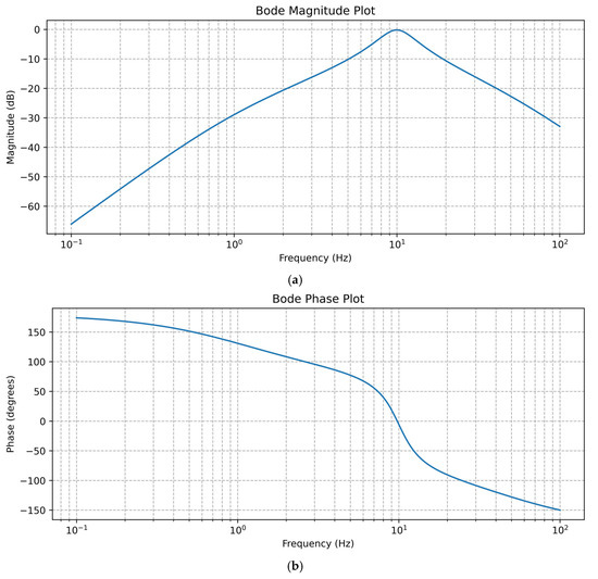 The plots represent (a) the Bode magnitude and (b) the phase response of a system consisting of high-pass, band-pass, and low-pass filters.