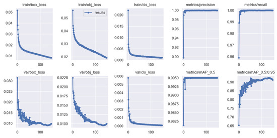 From Figure 9, it can be found that the loss values in both the training process and the validation process gradually decrease as the training cycle advances, leaning towards the lowest value when it reaches 100 cycles, and the mean accuracy percentage (mAP) [28] is higher than 95%.