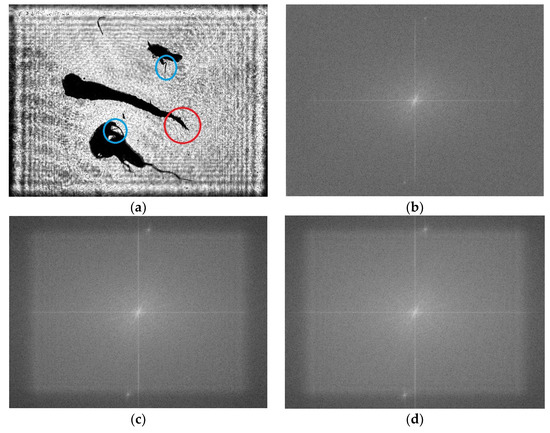 To analyze further the qualities of the images reconstructed by GPSDH and DL, Fourier transform operations are carried out, as shown in Figure 15a,b and Figure 16a, respectively. Their corresponding spectrum distributions in the spatial frequency domain are shown in Figure 16b–d. Since the DL method uses convolution to extract and synthesize the features of images in theory, the resolution of the images reconstructed by DL always degrades. However, the differences among Figure 16b–d are not obvious, showing that the quality of the image from DL can be guaranteed in resolution. It seems that the spectrum in 16b is more continuous and smooth, with some high frequency components from image noise removed. These spectrum distributions show that the images reconstructed are beneficial not only for human observation but also for plankton detection and recognition.