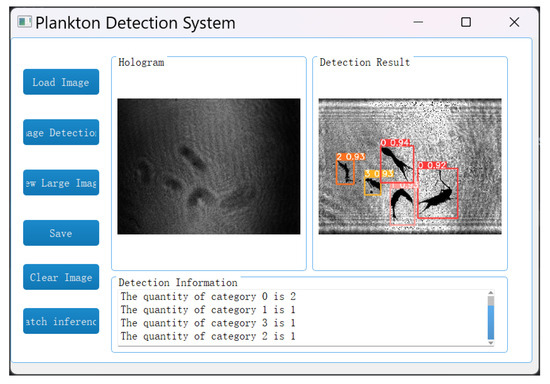 In order to achieve more convenient and intelligent human–computer interaction, PyQt5 is rescued to design the DL into an end-to-end system. PyQt5 5.15.10 is the Python binding for Qt5, which provides comprehensive support for Qt5 library, enabling DLto develop graphical user interface applications in a multi-platform environment on the Python platform [29]. By PyQt5, applications similar to those on the C++ platform can be efficiently designed and implemented by using Python and then be deployed quickly and accurately to various platforms. Based on this framework, an integrated system for plankton detection and identification is developed and the implementation process of the algorithms is visualized.