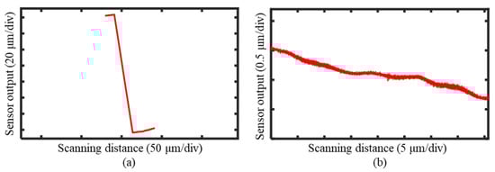 The measurement results of the laser sensor were used to separate the measurement errors. (a) The measurement results of the laser sensor following the probe scanning. (b) The measurement results of laser sensor scanning in a straight line along the X-direction.