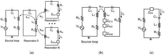 Figure 3b can be further simplified to Figure 3c using the reflected impedance , which is the impedance seen from the source loop to the resonator-0, as