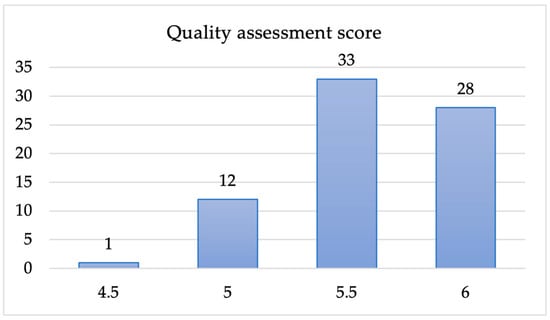 Quality score distribution of 74 primary studies.