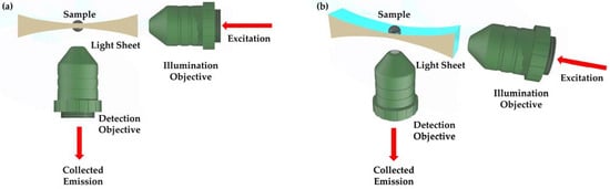 - Pampaloni, F.; Chang, B.-J.; Stelzer, E. Light sheet-based fluorescence microscopy (LSFM) for the quantitative imaging of cells and tissues. Cell Tissue Res. 2015, 360, 129–141. [Google Scholar] [CrossRef] [PubMed]