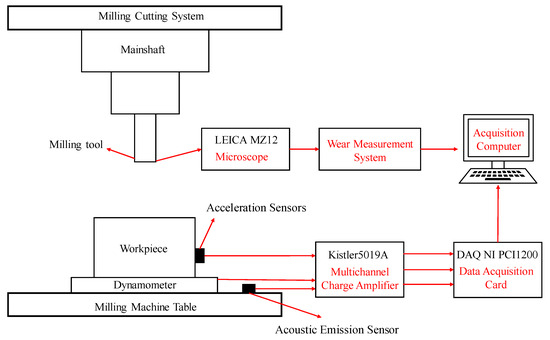 The prognostics health management (PHM) system comprehensively utilizes the advanced sensing technology and the new generation of information technology to achieve intelligent maintenance and fault pre-diagnosis of mechanical equipment. Model-based and data-driven methods are the two main approaches used for the modeling techniques for cutting systems. The focus of model-based pre-diagnosis is on thoroughly analyzing the system’s mathematical and physical models with the detailed examination of its physical and dynamic processes. However, in most cases, the complexity of mechanical transfer systems make it difficult to obtain the prior knowledge of system behavior. Therefore, data-driven models for indirect realization of tool condition pre-diagnosis based on feature learning of experimental data have been proposed and extensively studied. The development of artificial intelligence technology based on the black box model provides a more effective and accurate modeling method to pre-diagnose tool condition, which is more suitable for the study of highly random and nonlinear cutting signals. Commonly used intelligent pre-diagnosis models based on data-driven include support vector machine (SVM), long-short term memory (LSTM) network, artificial neural network (ANN) and so on, which were widely applied in mechanical equipment intelligent operation and maintenance system. The technical links of tool condition monitoring research are mainly composed of three parts: the selection of monitoring sensor signals, feature extraction and optimization based on signal preprocessing, and pattern recognition or prediction model establishment [4]. Ref. [5] studied data-driven model to monitor tool wear condition based on empirical model decomposition and BPNN model from vibration, force, and acoustic emission signals. Acceleration of mechanical vibrations and cutting forces signals was utilized for tool wear process monitoring. The effectiveness of ANN and multi-layer perceptron for tool wear prediction has been evaluated [6]. Research has been conducted on the relationship between chip surface color and tool wear to develop the predictive model using BPNN and changes in chip color [7]. Compressed sensing technology can be used for data compression and high-precision reconstruction of monitoring sensor signals. By extracting energy parameters from the compressed domain of acoustic emission signals, a comprehensive evaluation index for bearing damage status was established [8]. Sound signal during tool wear process has been discussed as monitoring signals for accurate tool wear prediction using time-frequency feature analysis [9]. Sound pressure and machining force during the milling process were measured, and artificial intelligence techniques presented accurate modeling capability for tool condition evaluation based on the acquired signals [10]. Neighborhood preserving embedding was conducted to fuse the extracted raw cutting force signals features and realize dimension reduction, and integrated SVM has been presented for accurate estimation of the end milling tool wear [11]. The cutting force signals were decomposed into multiple sub-band by wavelet packet decomposition. The optimized least square SVM was trained for tool condition monitoring with the extracted wavelet packet coefficients as the monitoring features [12]. Ref. [13] established the comprehensive tool remaining service life prediction model through support vector regression (SVR) and trajectory similarity. Relevance vector machine has been studied for tool wear prediction to show its advantages, compared with the traditional predictive models such as ANN and SVM [14]. A novel tool wear evaluation method was proposed using integrated radial basis neural network and kernel principal component analysis to accurately monitor tool wear during machining in real time [15]. An optimized gaussian process regression (GPR) model was introduced for forecasting the residual lifespan of low-speed bearings utilizing degradation assessment from monitored acoustic emission signals [16]. A hybrid information system based on LSTM network was presented for tool wear monitoring [17]. The deep bidirectional LSTM network was developed to use sensor data to track tool conditions by constructing time windows so as to predict remaining tool life using limited data [18]. Ref. [19] studied the singular value decomposition for cutting force signals to evaluate the tool wear using bidirectional LSTM neural network. In order to enhance sensor information in various processes, the use of the multi-sensor fusion method was essential to promote the adequacy of monitoring data and reduce uncertainty considering that the dynamic change of the sensor signal was directly affected by the processing status such as cutting parameters, tool condition, workpiece material characteristics, and processing environment. The selection of multi-sensor signal types and fusion method was the critical point to realize the multi-sensor fusion technology, which can obtain more valuable feature information for monitoring tool condition. The current research on obtaining the effective features from multi-sensor signals has received more and more attention [20]. A global multi-sensor fusion feature extraction method was studied for tool condition evaluation in milling process [21]. The acoustic emission and cutting force fusion signals were reduced dimensionally by linear discriminant analysis and an effective model for predicting tool wear was established through the fusion of features using SVM [22]. The model combined acoustic emission, vibration, and cutting force signals collected during dry turning to ensure accurate prediction of tool wear [23]. Ref. [24] presented a new probabilistic nuclear factor analysis, which was used to optimize the fusion of multi-sensor signal characteristics and effectively improved the tool condition monitoring accuracy. Ref. [25] monitored the spindle drive 
