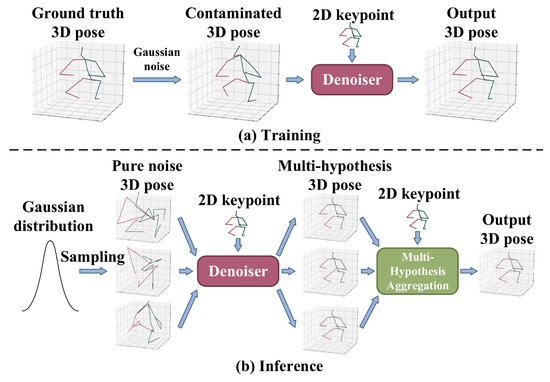 - Shan, W.; Liu, Z.; Zhang, X.; Wang, Z.; Han, K.; Wang, S.; Ma, S.; Gao, W. Diffusion-Based 3D Human Pose Estimation with Multi-Hypothesis Aggregation. In Proceedings of the 2023 IEEE/CVF International Conference on Computer Vision (ICCV), Paris, France, 1–6 October 2023; pp. 14715–14725. [Google Scholar] [CrossRef]