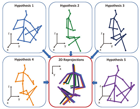 - Jahangiri, E.; Yuille, A.L. Generating Multiple Diverse Hypotheses for Human 3D Pose Consistent with 2D Joint Detections. In Proceedings of the 2017 IEEE International Conference on Computer Vision Workshops (ICCVW), Venice, Italy, 22–29 October 2017; pp. 805–814. [Google Scholar] [CrossRef]