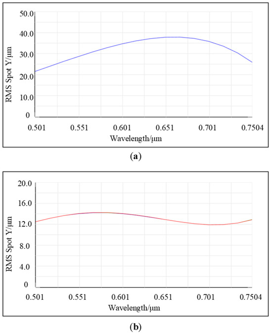 15] to correct astigmatism. However, the full-band RMS still displayed significant W and V-shaped variations. In the design result of eliminating astigmatism by matching a toroidal lens and a special filter by Ge in 2015, the RMS value in the high band was even four times that in the low band, with obvious maximum and minimum values [