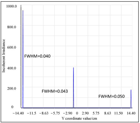 Figure 7 illustrates the incoherent irradiance, which is used to determine the FWHM for each wavelength, thus providing the precise and optimal resolution.