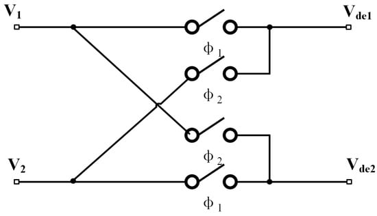 As argued in [,], the impact of on the circuit is minimal because it is charged and discharged by a low-impedance source. Therefore, its effect can be neglected when calculating the output voltage . The final relationship between and is as follows: