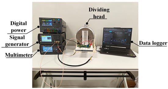 The capacitive readout circuit is depicted in Figure 12. In the figure, the carrier wave and square wave are connected via wiring terminals, and the output voltage is delivered through a wiring terminal to a digital multimeter for reading. The accelerometer test system was built to test and verify the designed MEMS accelerometer capacitive readout circuit, as shown in Figure 13. The dividing head shown in the figure can be precisely rotated to any angle, providing accurate angular variations for the scale factor test in the experiment. During the test, the sensitive axis of the accelerometer needs to be aligned with the rotation direction of the dividing head.