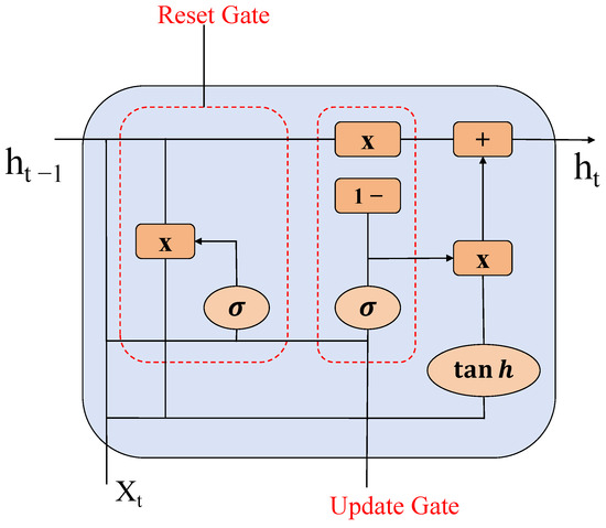 In this study, we introduce a network architecture that integrates GRU with MLP. GRU is a variant of RNN designed to address the issues of vanishing and exploding gradients that are commonly encountered in traditional RNNs during the training phase. The GRU architecture incorporates components such as update gates and reset gates. In comparison to Long Short-Term Memory (LSTM), another RNN variant, GRU is characterized by a reduced number of parameters, which facilitates expedited training and requires fewer data for effective generalization. At each time step within the input sequence, the update gate regulates the retention of information from the previous hidden state and the integration of new information from the current input. Meanwhile, the reset gate governs the manner in which previous hidden states are combined with the current input to generate new candidate hidden states. Through the continuous execution of these information updating and transferring operations at each time step, the ultimate output is a hidden state representation that encapsulates the entire sequence after processing. The RNN architecture employed in this paper consists of two GRU recurrent layers, with the GRU structure illustrated in Figure 5.