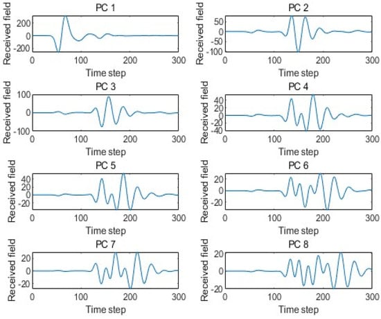 To reduce the dimensionality of the training set, this paper did not use all 300 principal components obtained from PCA as sample data. In fact, a linear combination of a certain number of principal components can accurately fit the echo data in the training set. Echo data refer to the data reflected back after the signal encounters obstacles or changes in the medium during transmission. Many systems (such as radar and sonar) rely on the echo signal, and the time domain can clearly capture the details of the echo: determine the location of the target and reflect the material or size of the target.