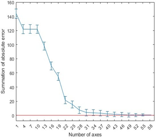 Figure 5 shows the absolute error of the linear fit of the echo data using the first 40 principal components. In this figure, it can be seen that, when the first 40 most significant principal components are used for fitting, the original echo can be approximated very accurately. Therefore, the first 40 out of the 300 eigenvectors were selected as the principal components of the GPR scattering echo. This approach ensures that no information contained in the neglected principal components is lost, while also further reduces the dimensionality to speed up the network’s training time.
