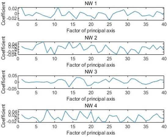 The weight coefficients of the 40 principal components used to represent the compressed signal.