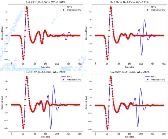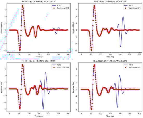 Under the four model parameters, the prediction results of traditional BP network (dual hidden layers) are compared with those of FDTD.