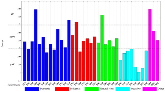 The availability and characteristics of thermal energy sources also influence the feasibility and performance of TEGs. This section reviews the potential of TEGs to harness energy from a wide range of applications, including domestic and industrial environments, as well as specialized areas such as natural heat sources, wearable devices, and other innovative uses. As for the thermoelectric materials, all the references cited in this section that provide material information employ either commercial or custom-designed TEGs based on bismuth telluride (Bi2Te3).