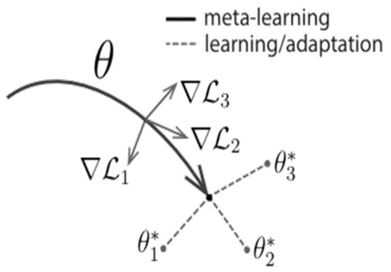 - Finn, C.; Abbeel, P.; Levine, S. Model-Agnostic Meta-Learning for Fast Adaptation of Deep Networks; PMLR: New York, NY, USA, 2017; pp. 1126–1135. [Google Scholar]